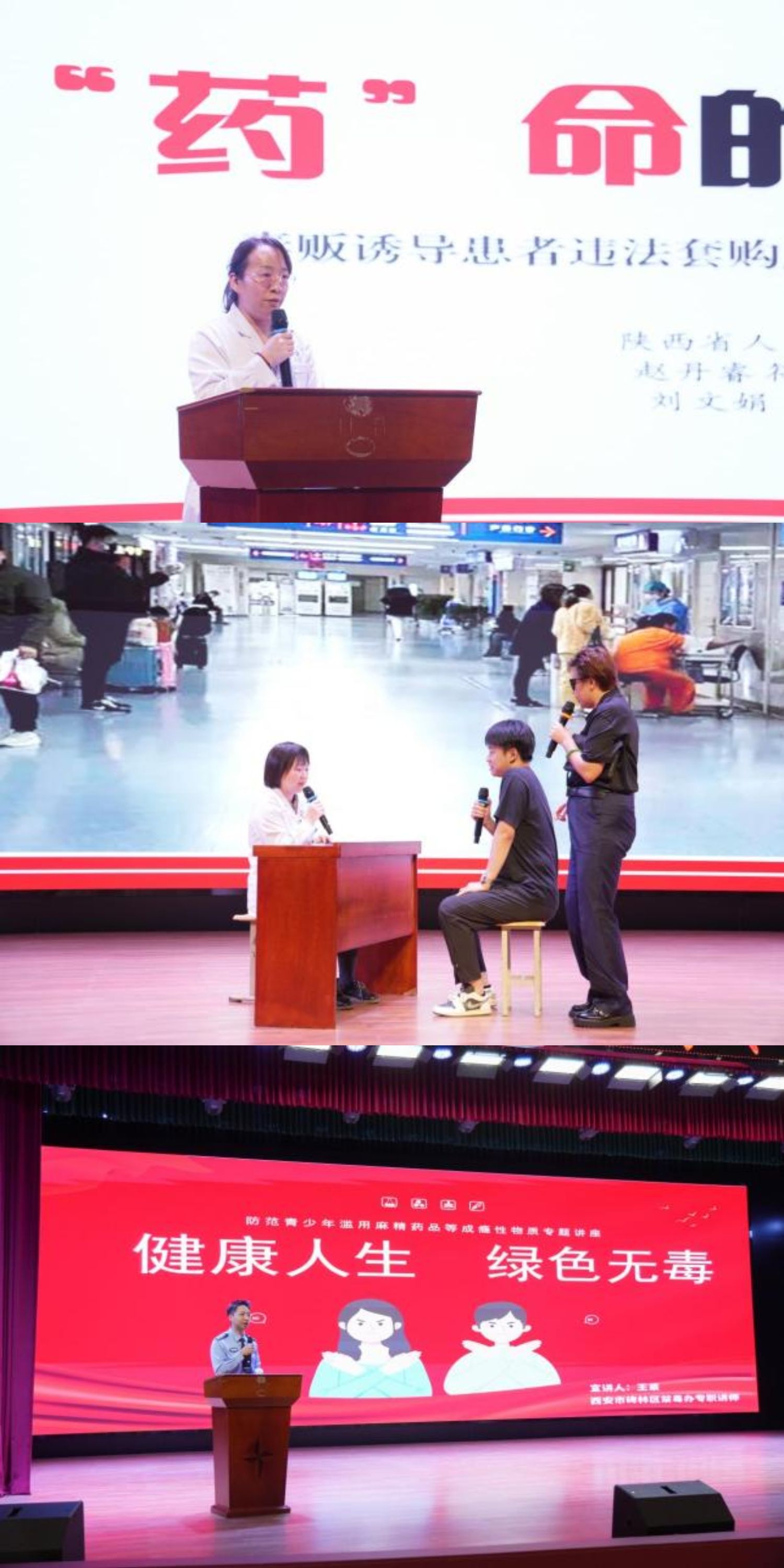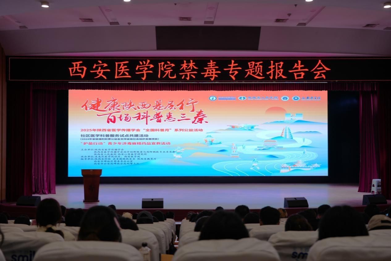 9月26日,“健康陕西基层行百场科普惠三秦”系列活动之“护苗行动”青少年涉毒麻精药品宣教活动在我校未央校区举办。本次活动由省医学传播学会、省人民医院和我校联合主办,校团委、医学技术学院承办。副校长李雪萍、团省委青社部部长吴闯、科协科普部部长杨军胜、碑林区禁毒委员会、市公安局碑林分局等领导及专家出席开幕式。活动由陕西广电融媒体集团张羽扬主持。