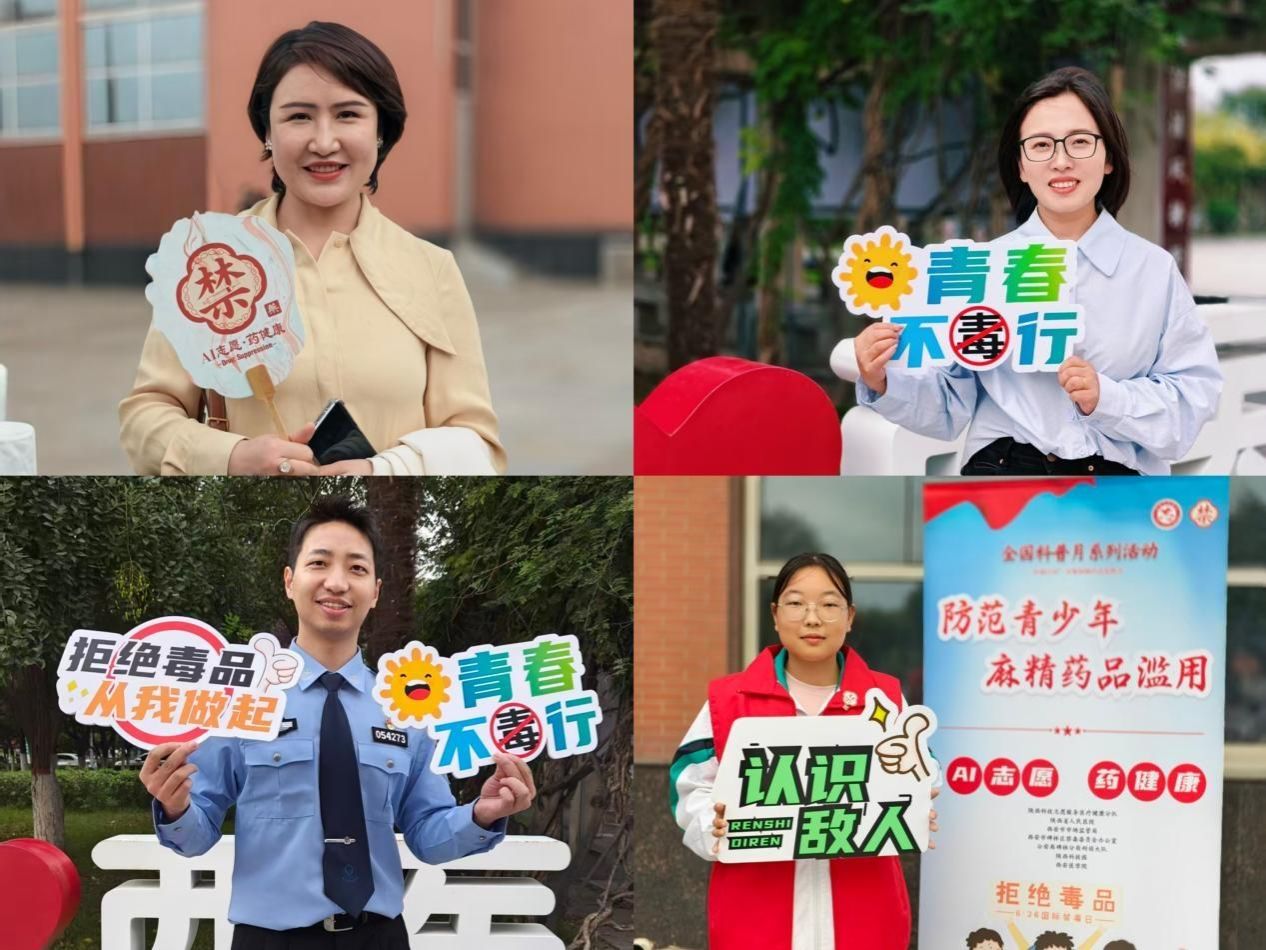 此外,活动现场还设置了禁毒科普集市,我校500余名学生参与活动。集市现场涵盖药品模型观摩、知识擂台、非遗漆扇制作等互动环节。学生通过辨识伪装毒品、答题闯关、手作体验等方式,深化对禁毒知识的理解与认同。现场学生齐呼“AI志愿·药健康”,展现西医青年积极参与禁毒宣传的坚定态度。