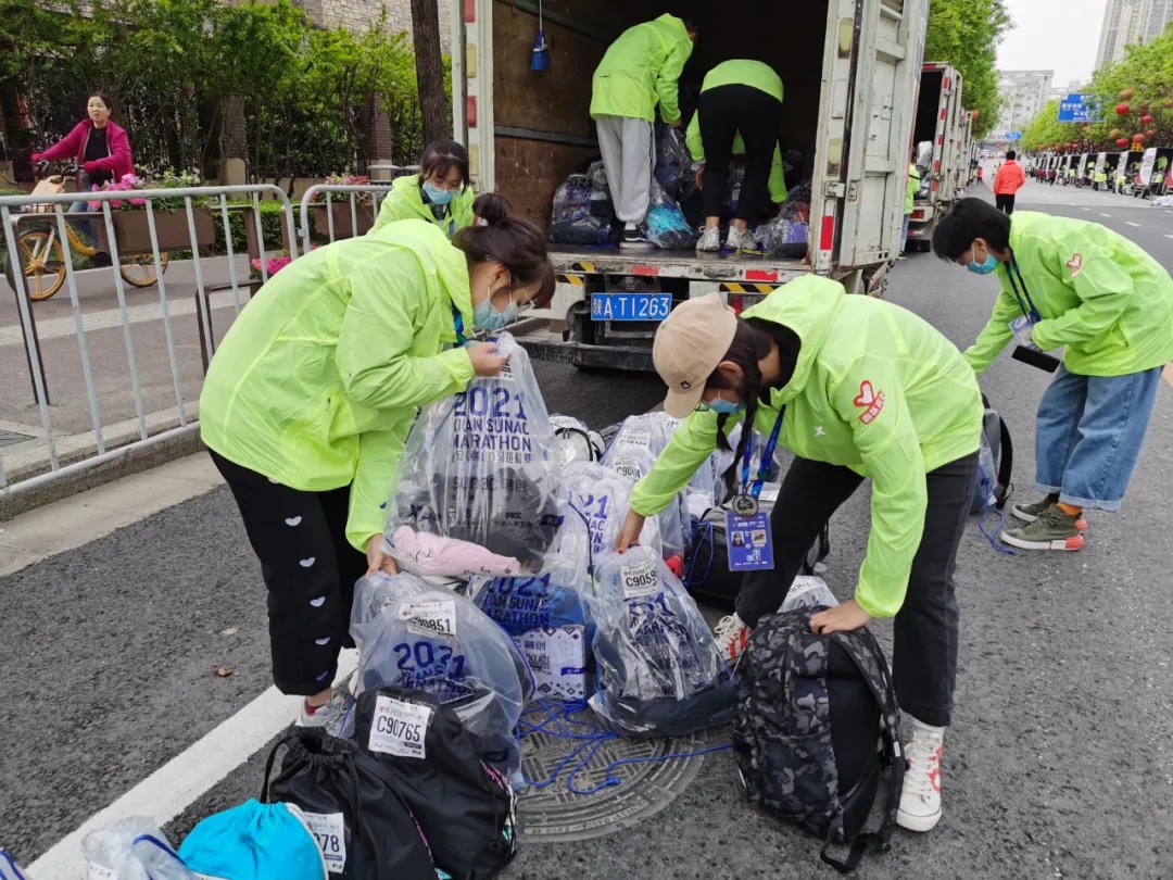 志愿者们凌晨4点集合出发,5点抵达南稍门,在存包区进行岗前集中培训,熟悉存取包工作流程。物品寄存工作6点开始,大家有序为参赛选手存放背包,并进行登记。7时30分,马拉松赛正式开跑,志愿者分两批分别前往半马、全马终点,慈恩西路和大明宫遗址公园,将参赛包进行分类整理并有序排放,以最快的速度,最便捷的方法,为参赛选手找到个人物品,减少参赛选手等候时间。服务过程中,志愿者们团结合作,工作有序开展,快速而顺利地完成读号、找包、传递、做标记等一系列流程。在此期间,志愿者们积极主动,耐心服务,充分展现出西安医学院青年志愿者的精神风貌。