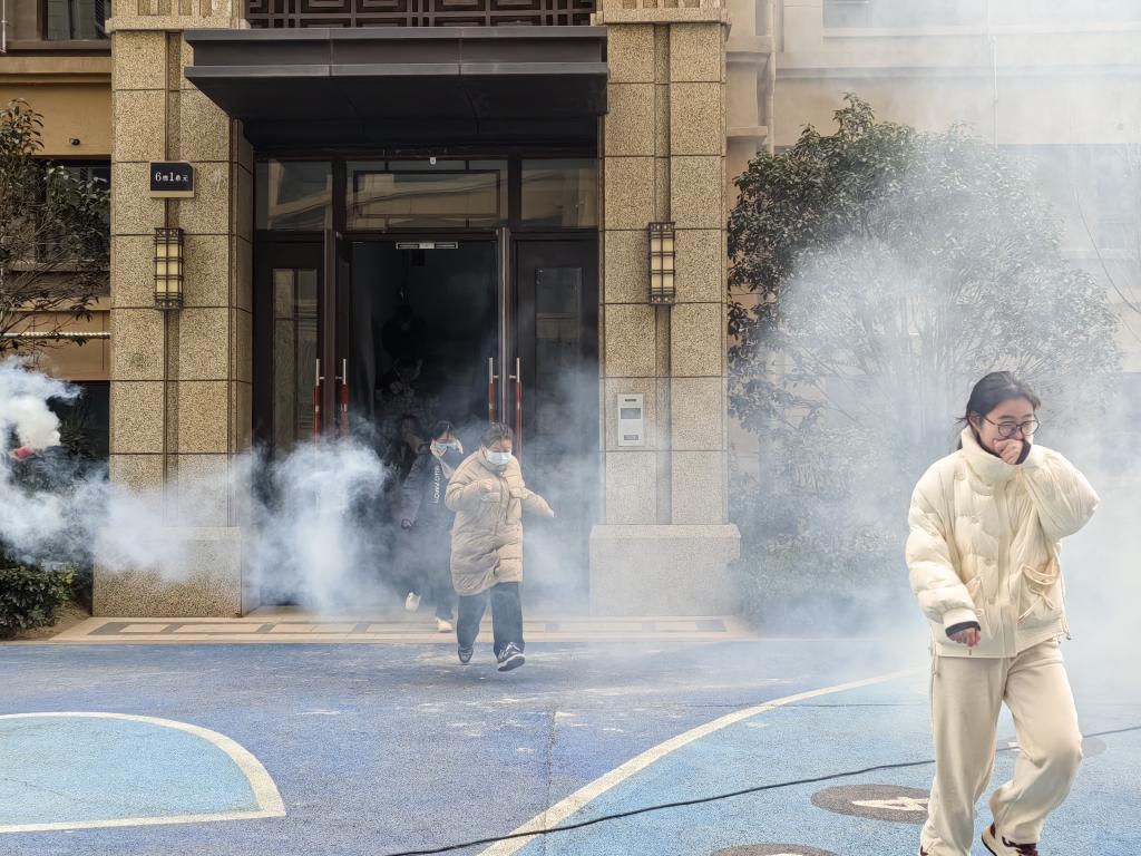 活动现场,工作人员向居民讲解了消防安全的相关知识,演示了灭火器材的使用方法和灭火技巧,帮助居民掌握和了解消防技能和常识。在消防应急疏散演练环节,随着烟雾弹被扔出,在工作人员的指导下,志愿者们用毛巾捂住口鼻,低头、弯腰,沿逃生路线有序撤离,向居民演示消防逃生的正确方式。